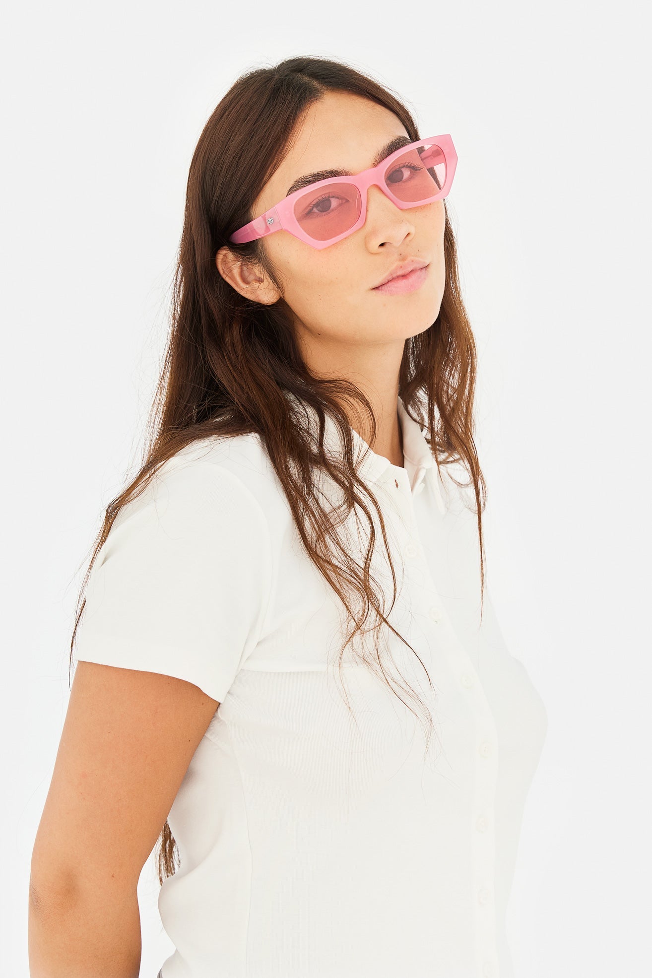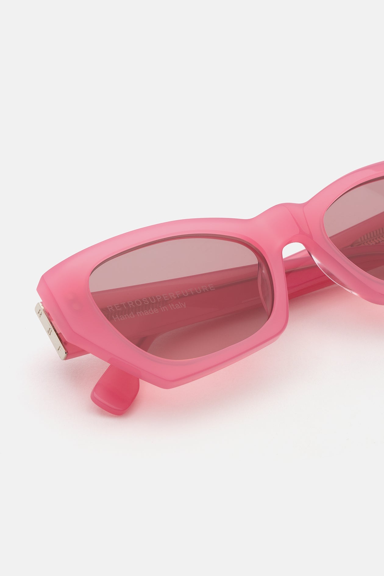 Acetato de alta calidad en color rosa fresa. Lentes rosas tono sobre tono con base 2. Gafas de alta gama diseñadas en Milán, Italia.
