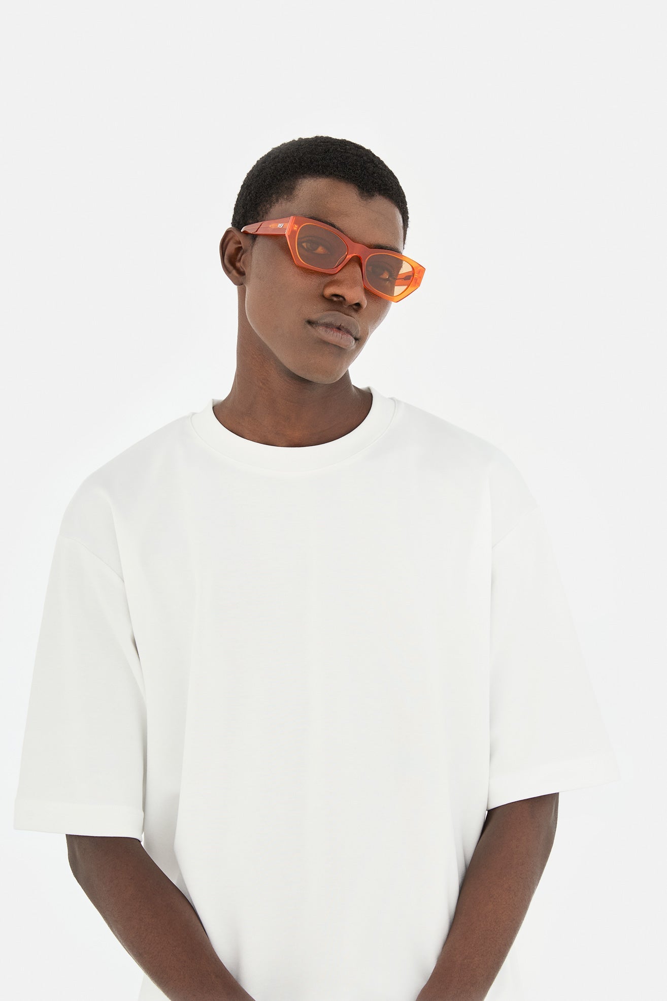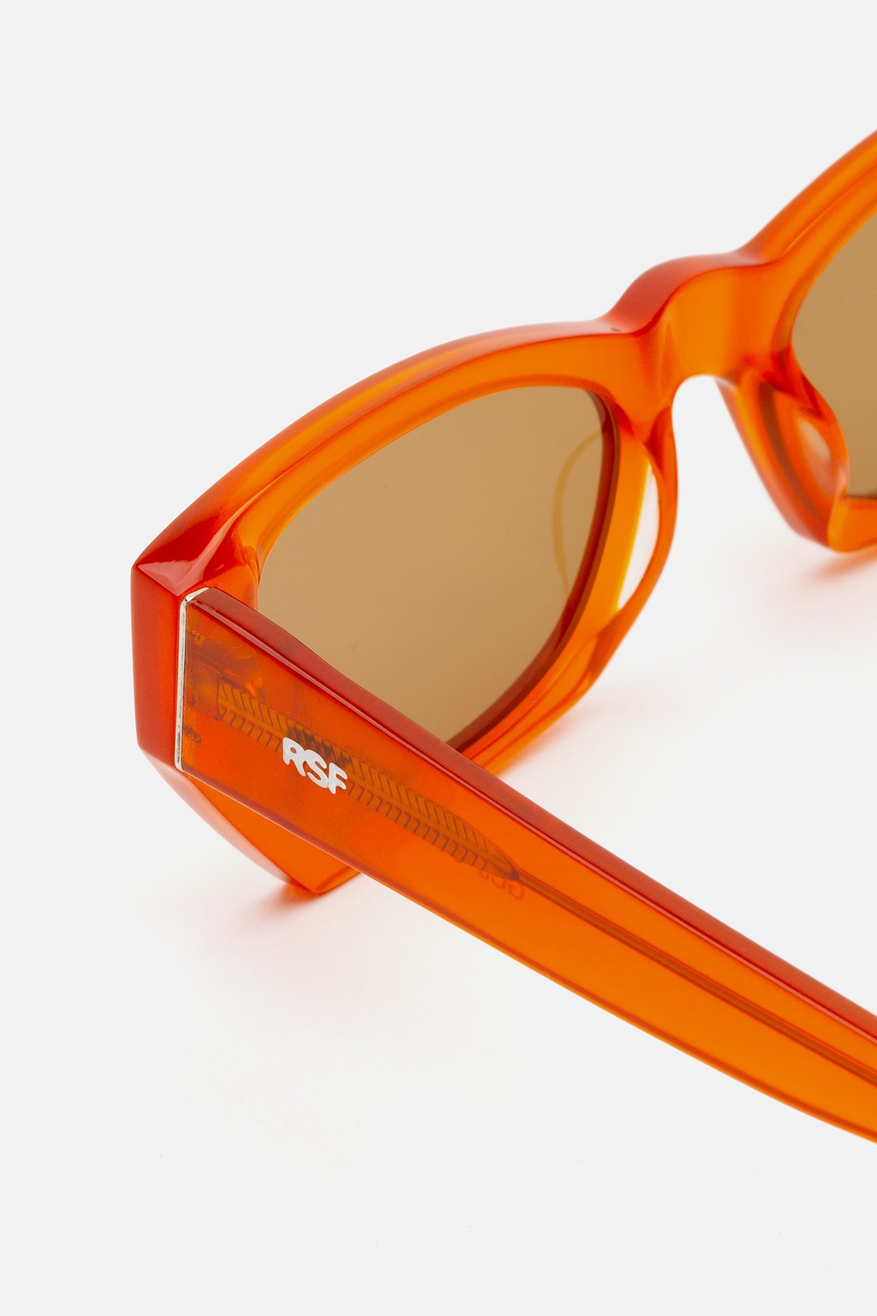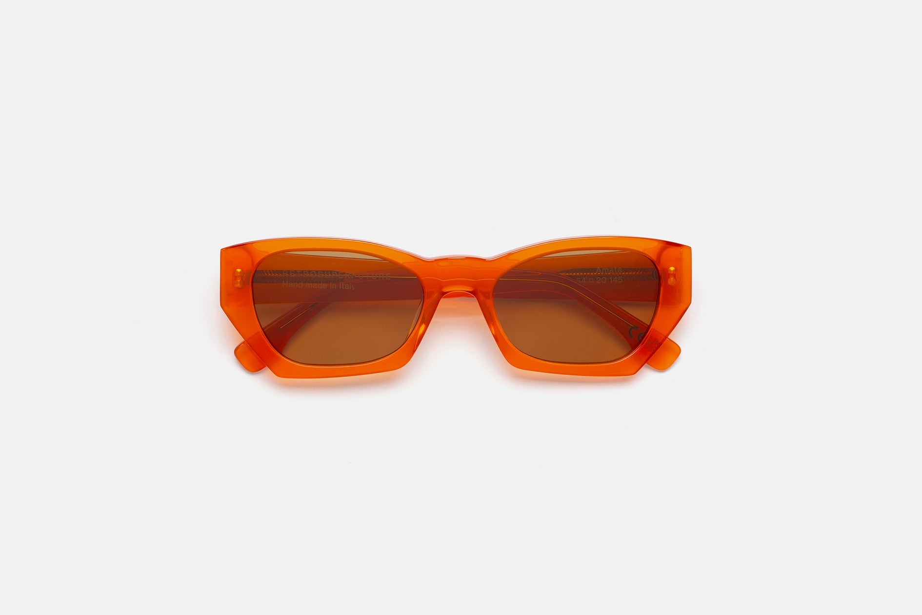 Acetato de alta calidad en color naranja mandarina. Lentes naranjas tono sobre tono con base 2. Gafas de alta gama diseñadas en Milán, Italia.