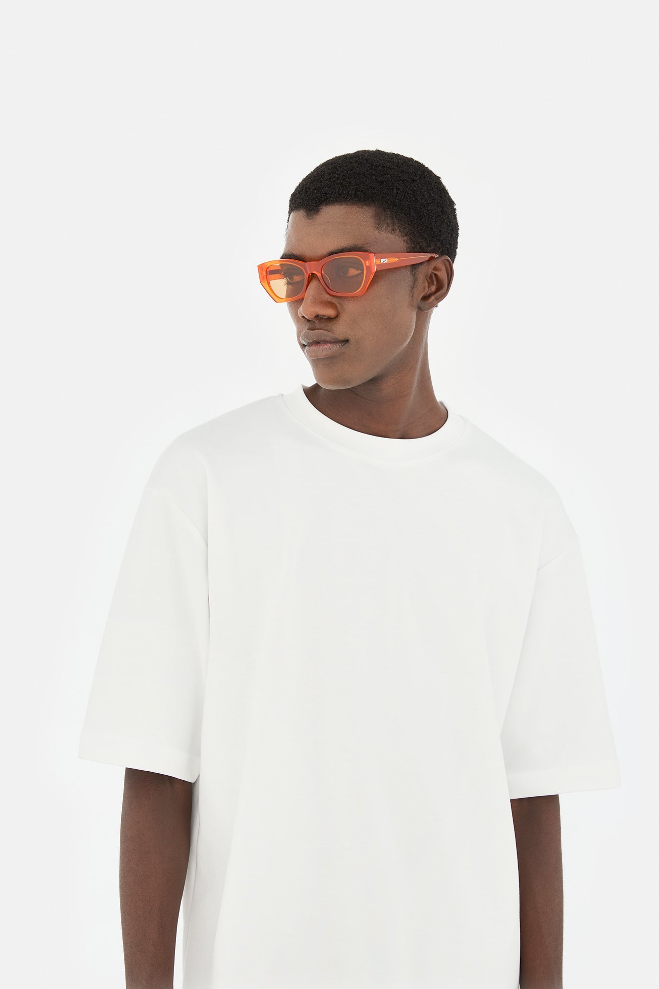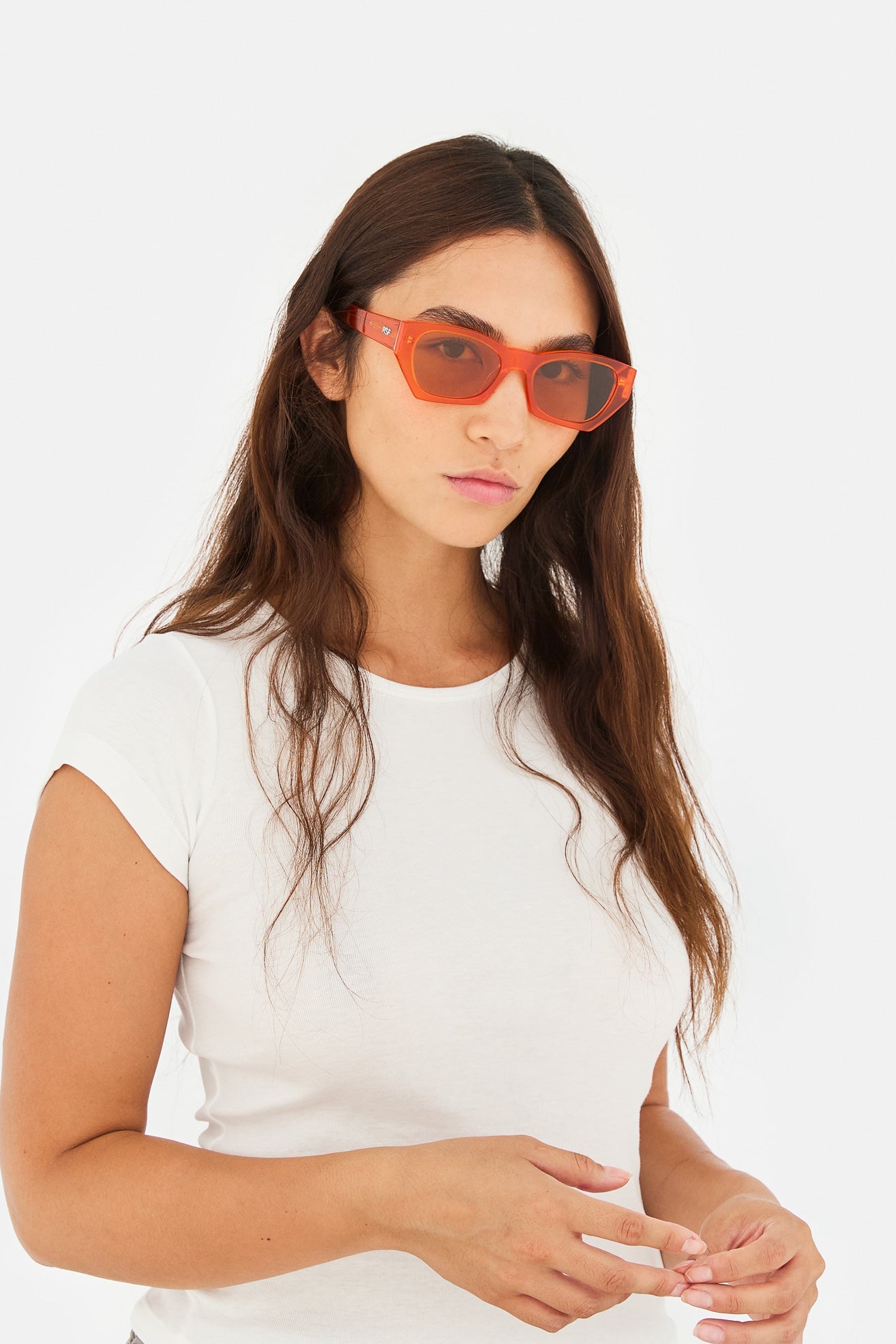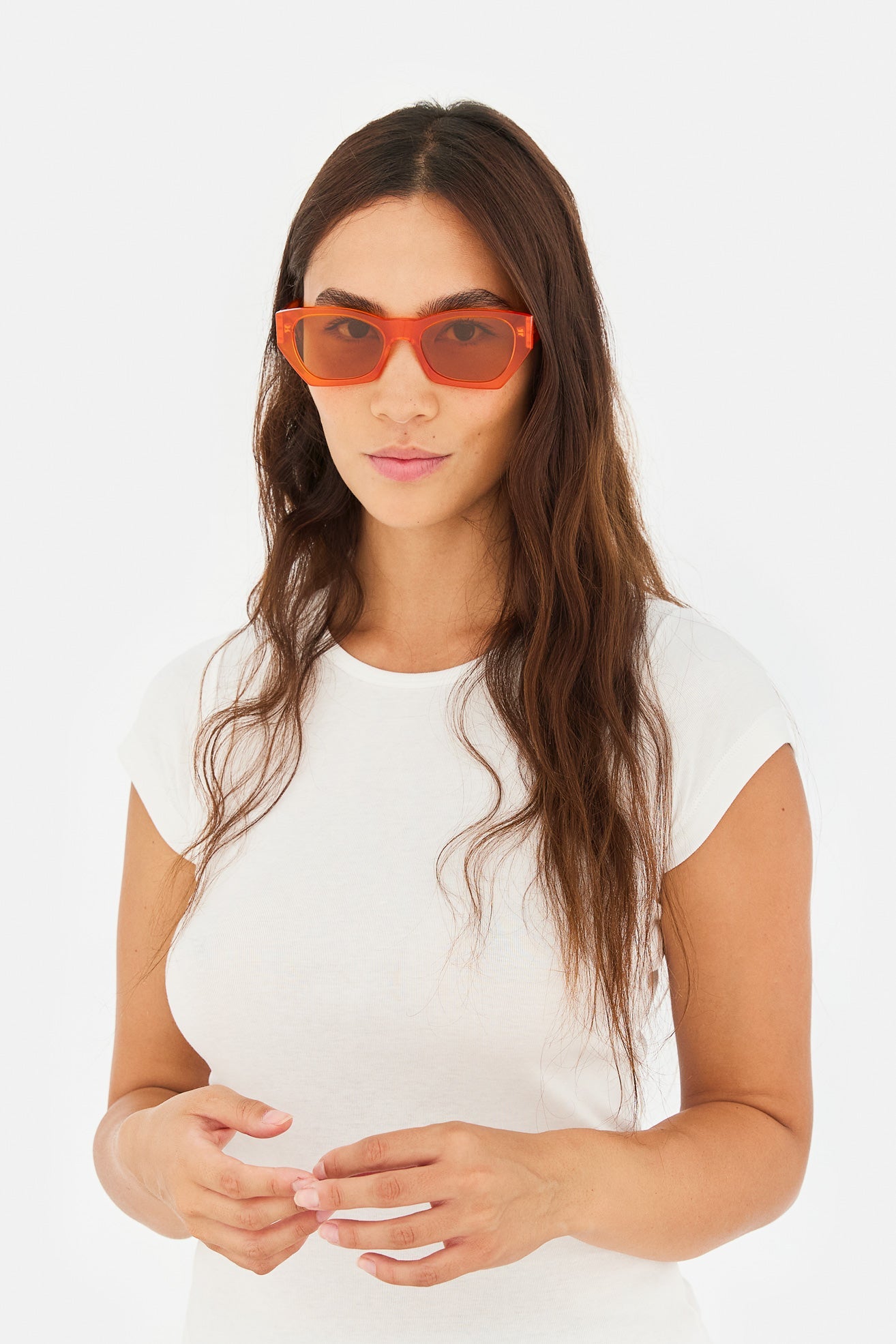 Acetato de alta calidad en color naranja mandarina. Lentes naranjas tono sobre tono con base 2. Gafas de alta gama diseñadas en Milán, Italia.