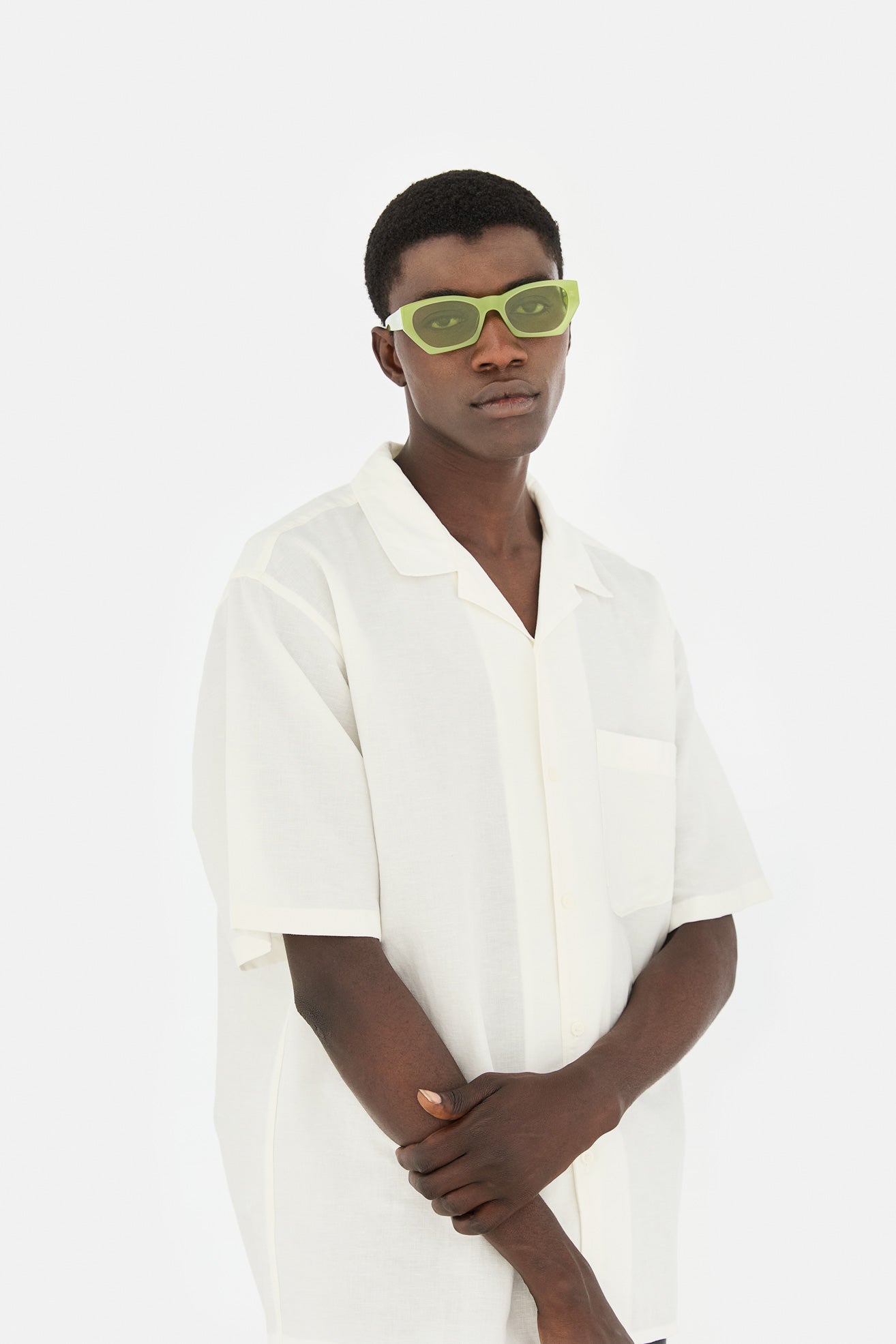 Acetato de alta calidad en color verde menta. Lentes verdes tono sobre tono con base 2. Gafas de alta gama diseñadas en Milán, Italia.