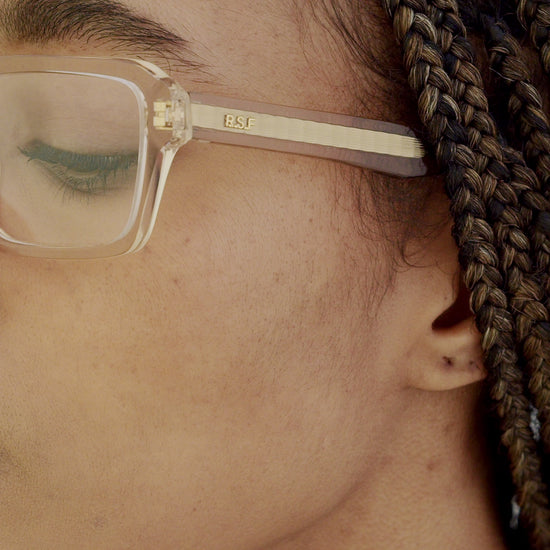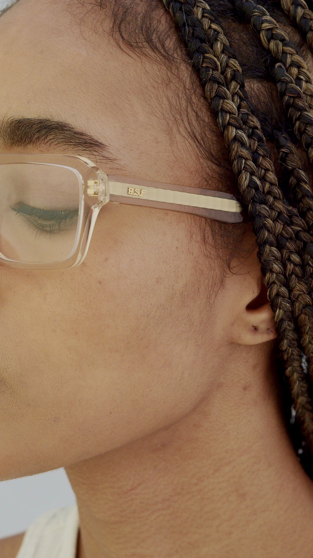 Numero 120 es un diseño rectangular de baja altura que se caracteriza por su diseño geométrico con ángulos romos.El modelo enfatiza una estética moderna distintiva, con una estructura de acetato resistente al tiempo que mantiene un ajuste cómodo adecuado para el uso diario durante todo el día.Esta versión del Numero 120 está disponible en acetato de resina cristal.