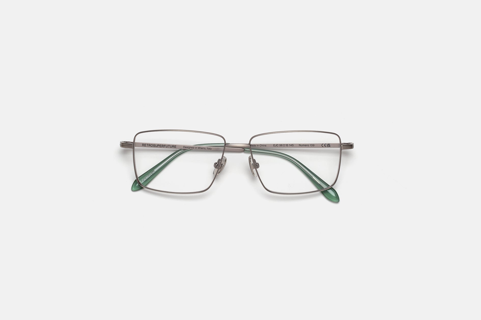 Metal de alta calidad con acabado galvánico plateado mate y punta de acetato para un ajuste cómodo. Lentes transparentes en la base 4. Lentes graduadas no incluidas. Gafas premium diseñadas en Milán, Italia.