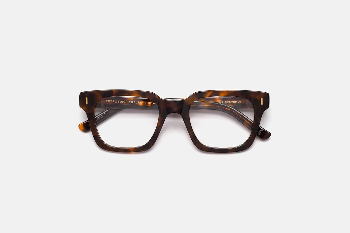 Diseñada para la colección Primavera/Verano 2021, Numero 79 es una silueta icónica, concebida como una interpretación moderna de las clásicas monturas cuadradas. Los gruesos aros de acetato del modelo, con patillas sobresalientes y lentes anchas, están tallados internamente para conseguir ligereza y ajuste. Esta versión viene con un acetato de cristal de color havana . Las lentes graduadas no están incluidas.