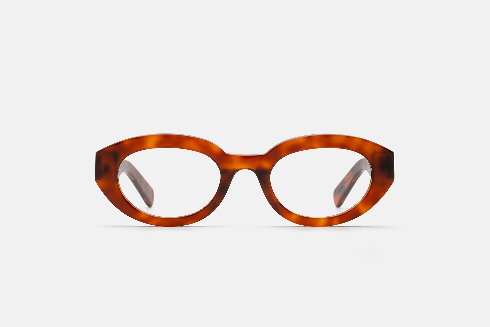Es una montura ovalada por excelencia, diseñada para el uso diario de la óptica. Sus suaves curvas han sido cuidadosamente diseñadas para conseguir la estructura más esencial y sinuosa, lo que la convierte en una pieza icónica de gafas. Para completar el impacto audaz de su diseño, N94 se presenta en un vibrante acetato habano con adornos y detalles dorados en las patillas.