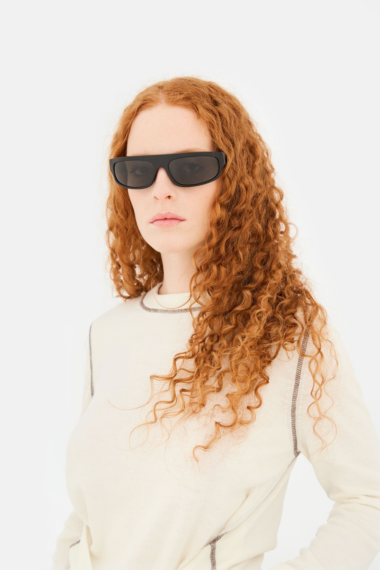 Acetato italiano de alta calidad en un acabado negro atemporal. Lentes Zeiss extra negras de base 8. Gafas de alta gama hechas a mano en Italia.